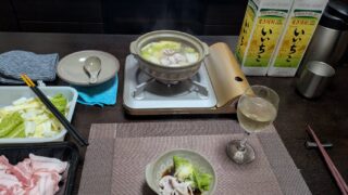 今夜は鍋で。今日はかなり蒸し暑く、室内温度26度とか… こんな時に鍋やるとは頭イカレてるw