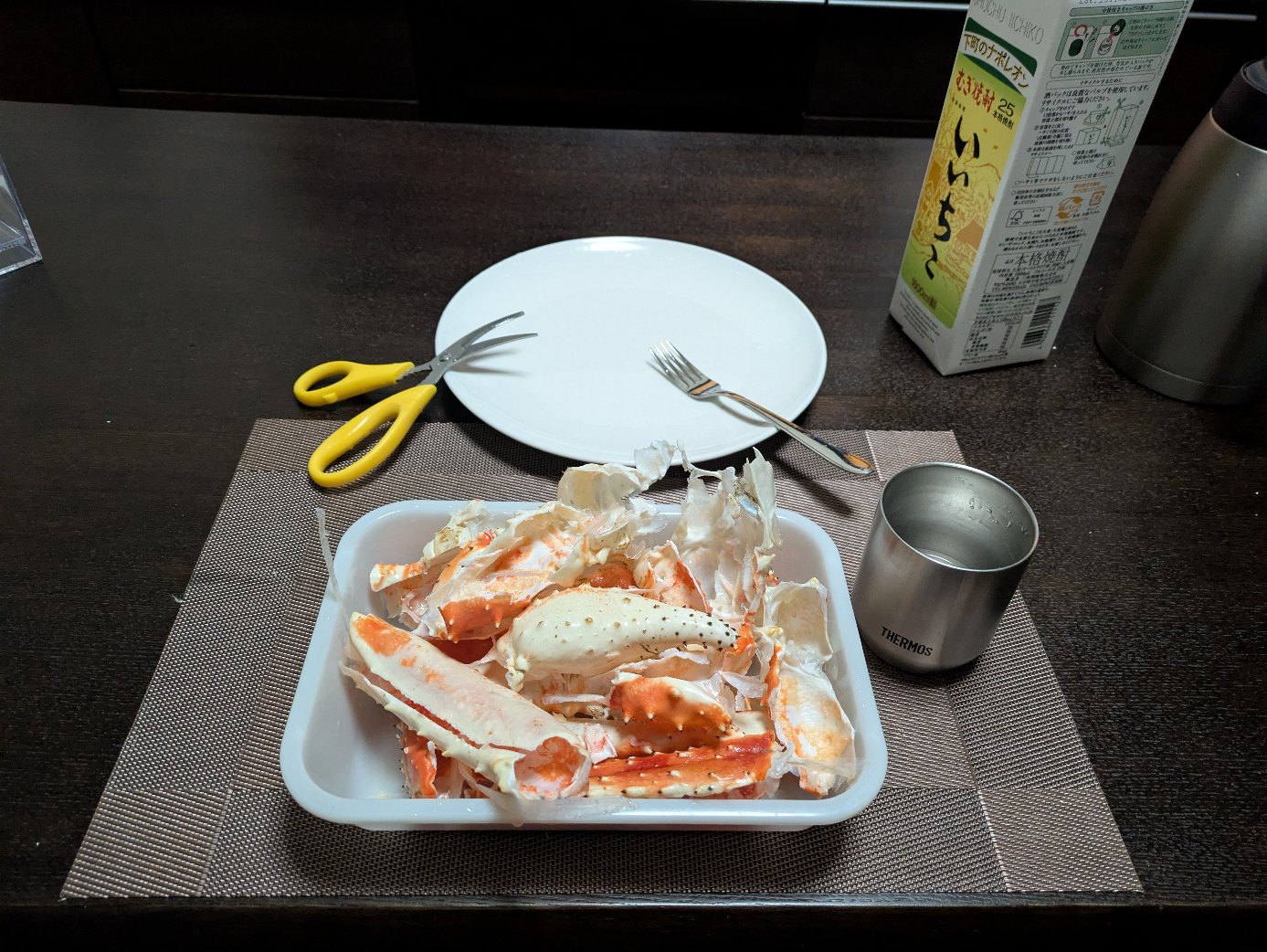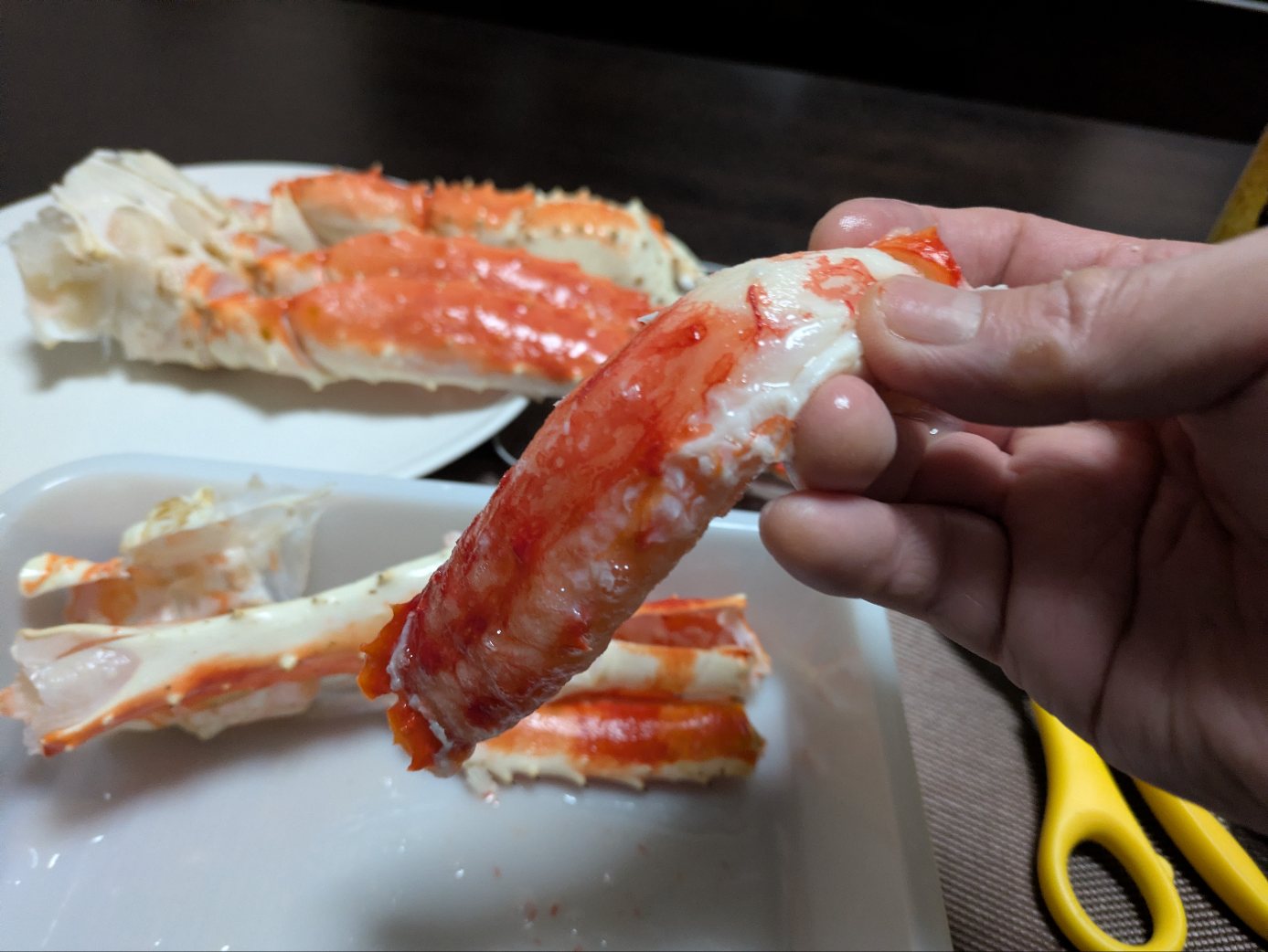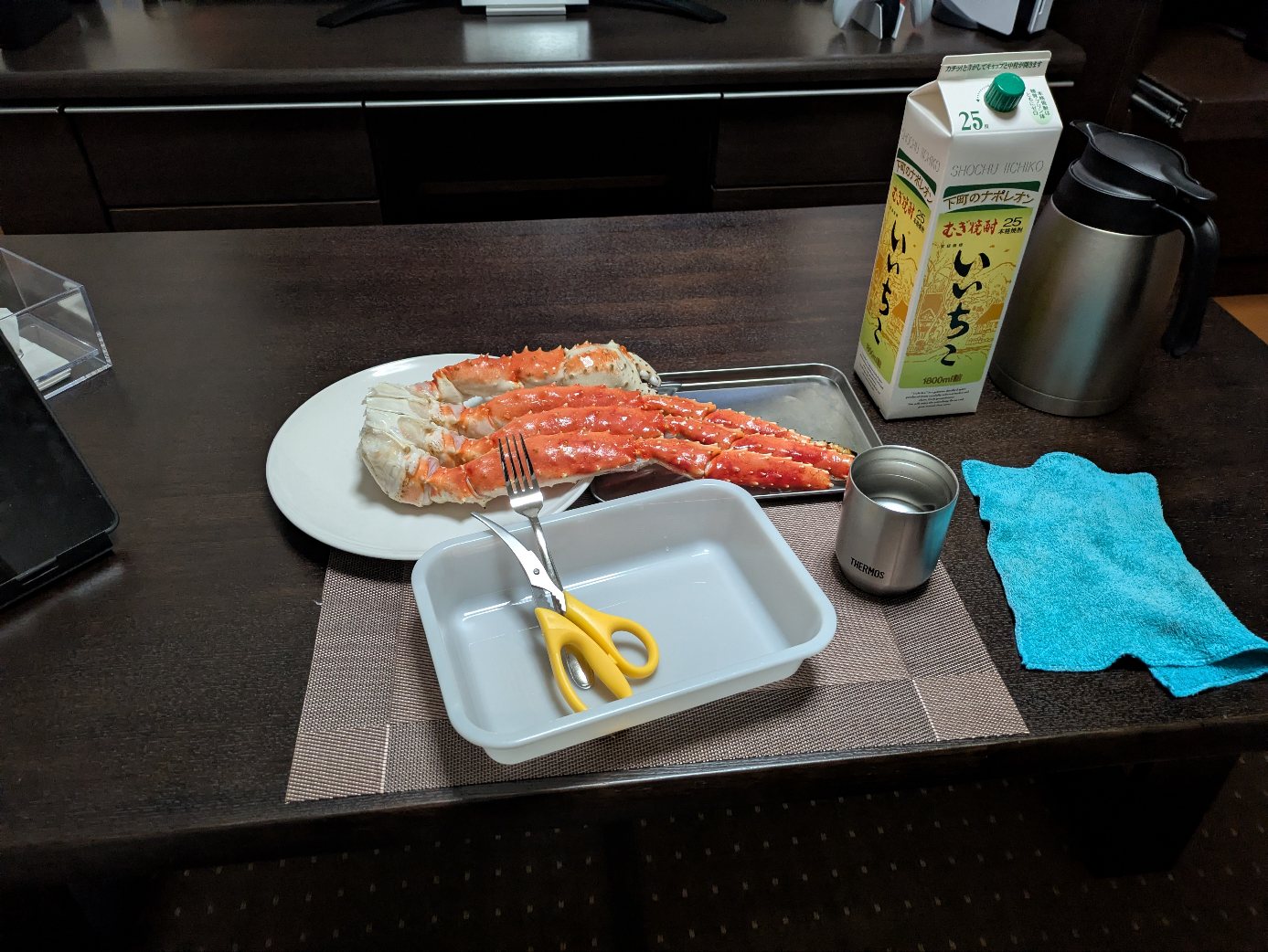 今夜はタラバ蟹で晩酌を。午前中から冷蔵室に移して解凍させておこう。そう言えばふるさと納税のポイント還元って無くなったんだよな、残念。