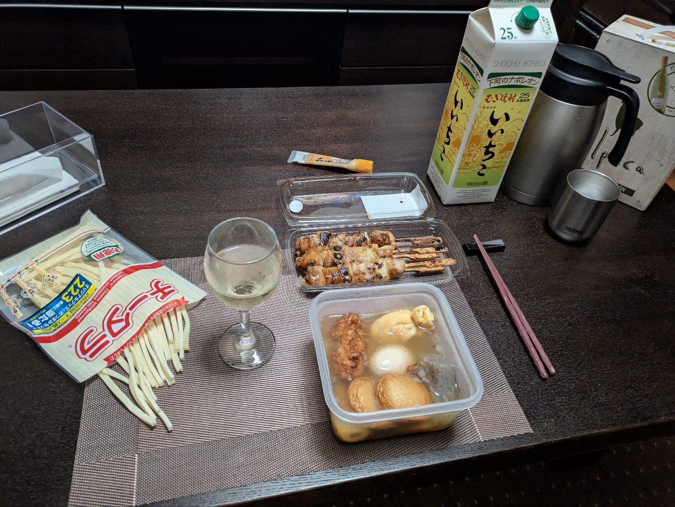 ではいただきましょうか。手がベタつくのが嫌なので布巾は常備。