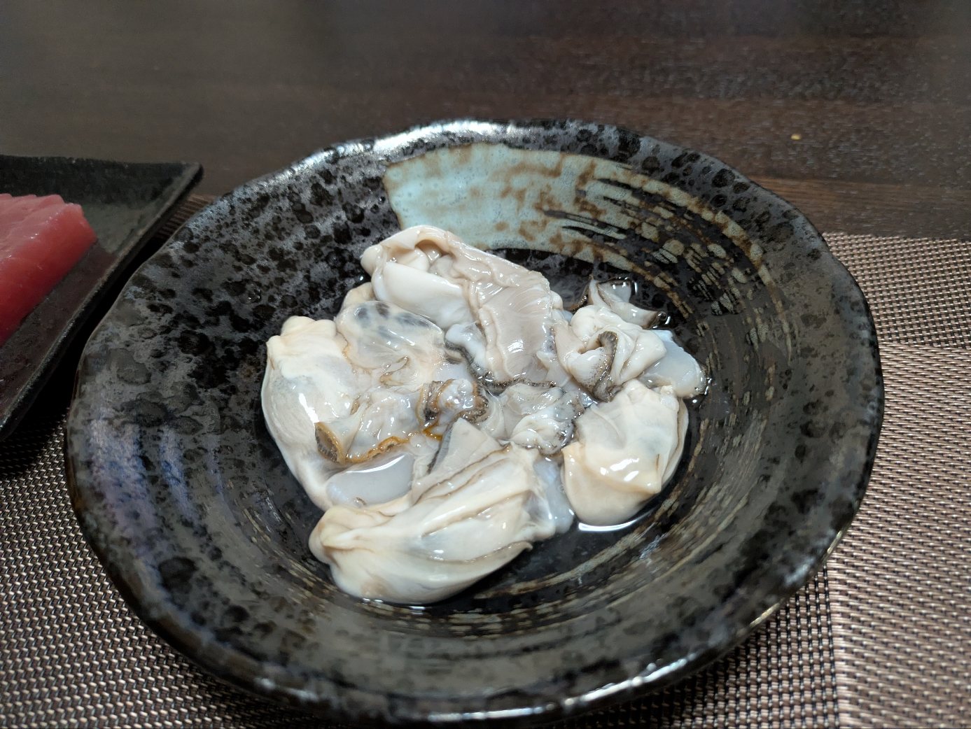 あとは生牡蠣を。それぞれわさび醤油とレモン汁でいただきましょう。