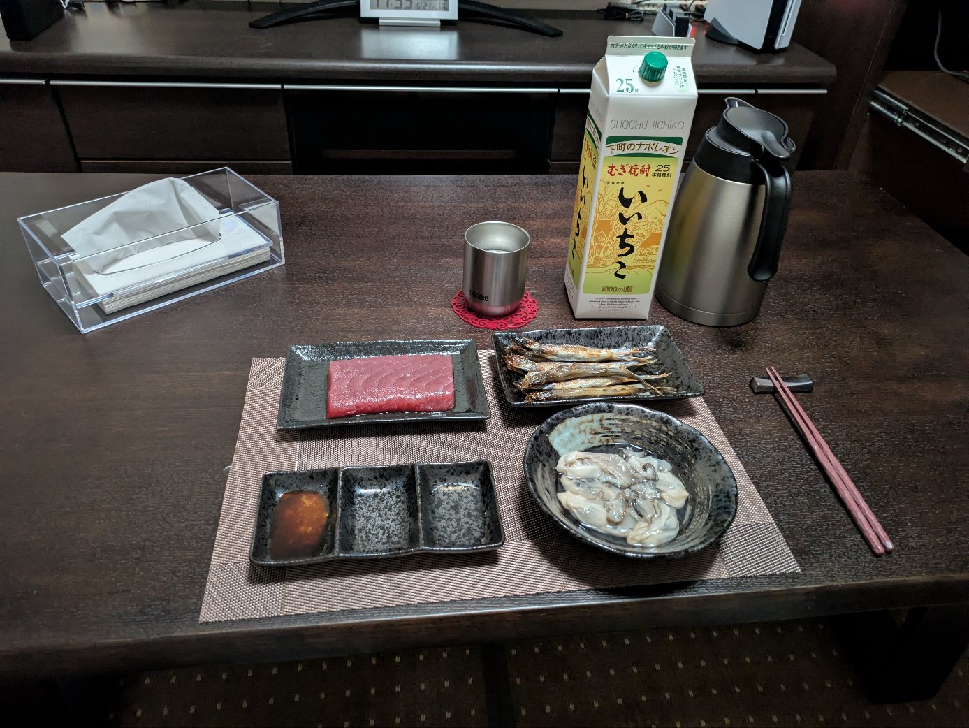 待ち遠しかった晩酌も、始まってしまえば過ぎるのは早いものです。光陰矢の如し、だから月曜は過ぎるのが遅いのですな、まったくw