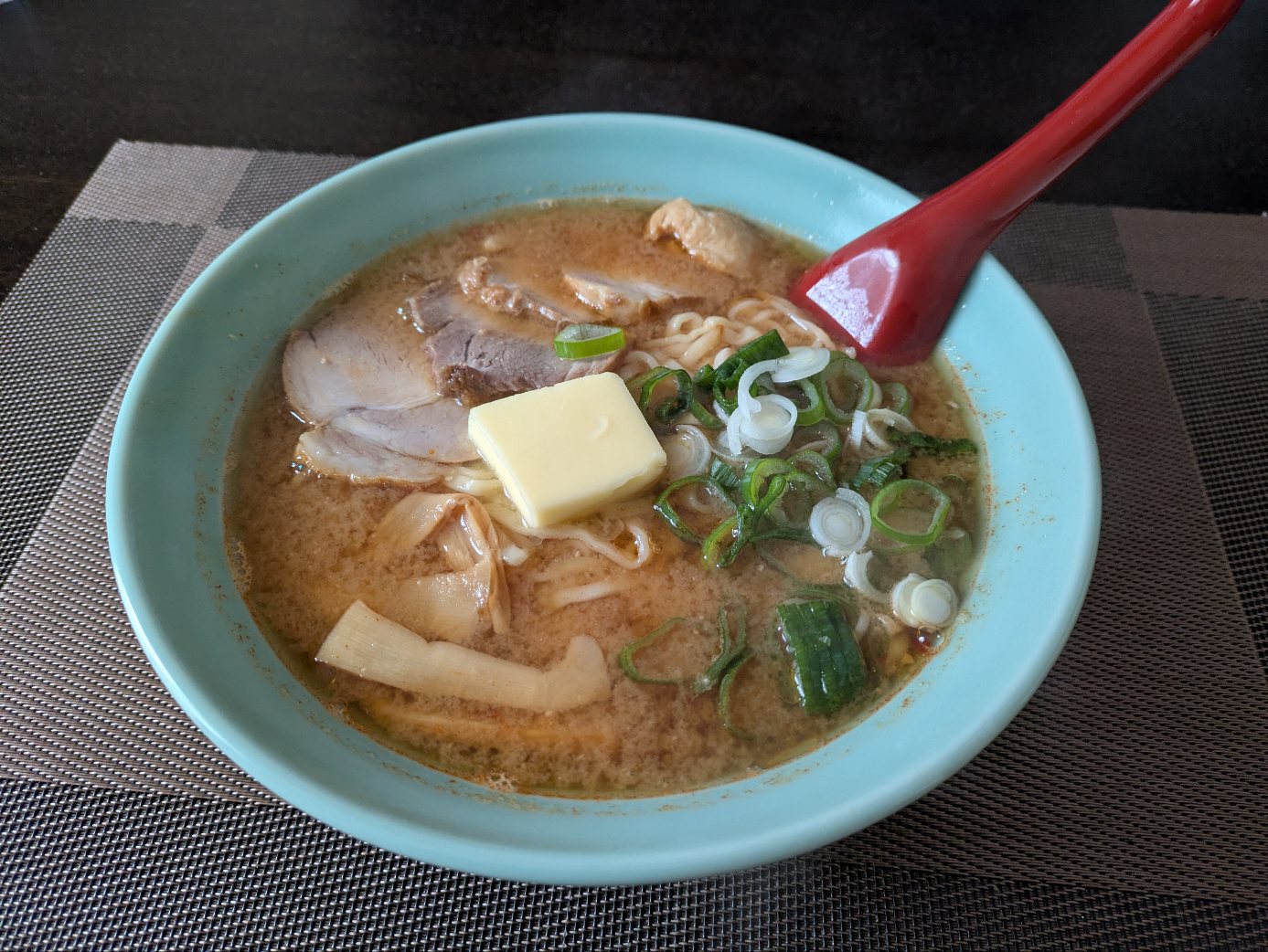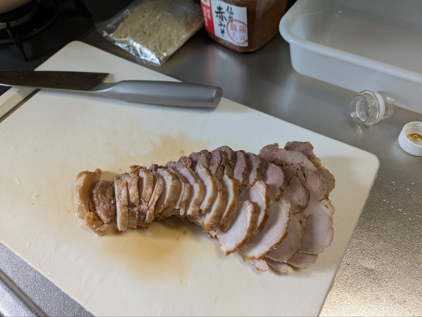 昼は家ラー。一昨日から叉焼を仕込んでいたので味噌バターチャーシューで。