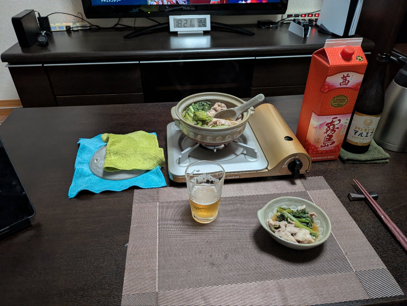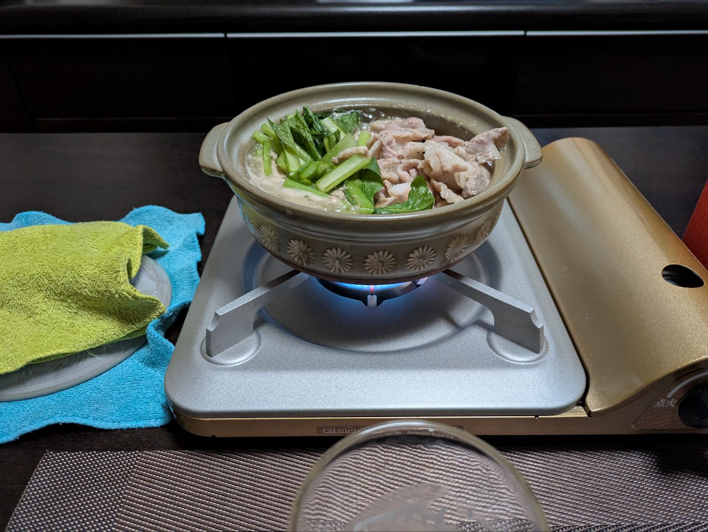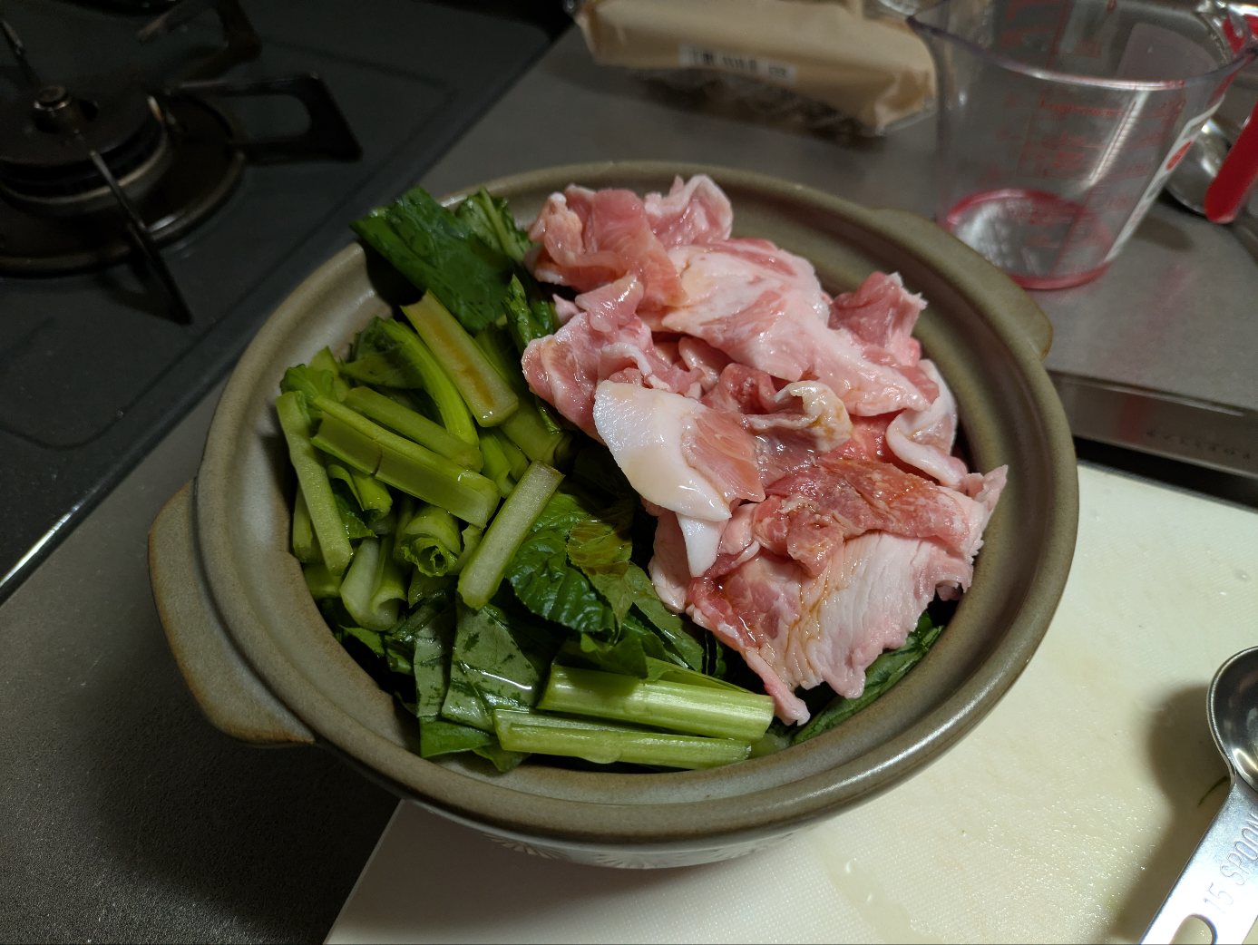 今夜は小松菜と豚肉買ってきて常夜鍋でも。