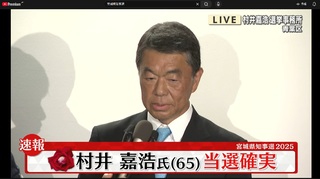 そう言えば宮城県知事選はどうなったか?と覗いてみたら現職に当確出てたな、残念。
