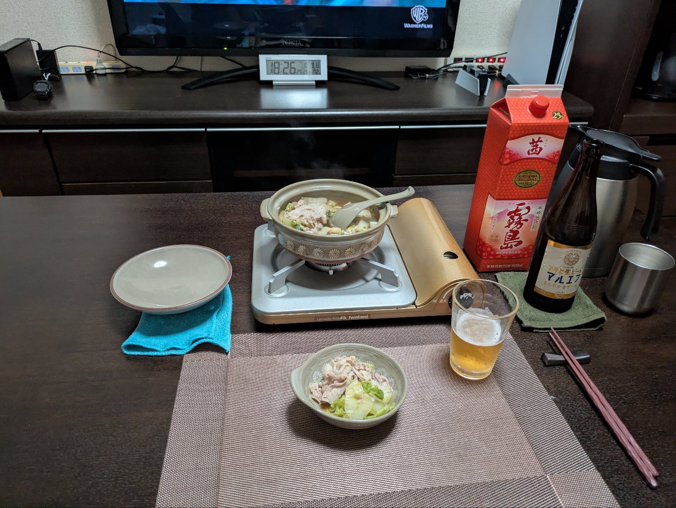 今夜の晩酌 豚バラ白菜鍋で一杯