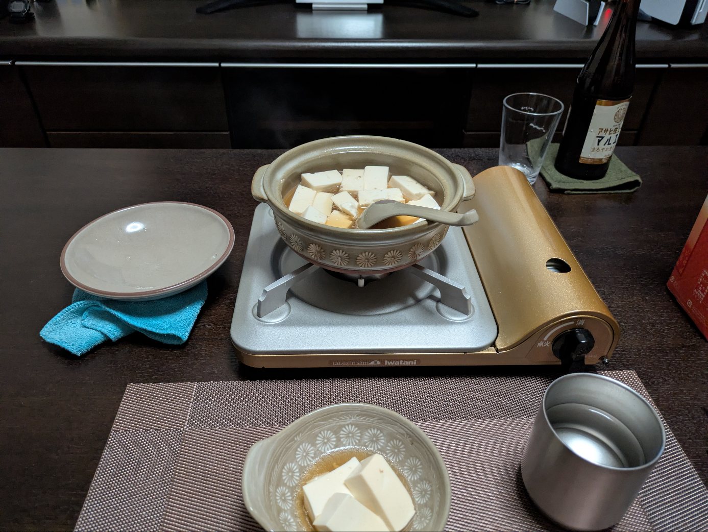 豆腐も買ってきたんで、具が尽きたら湯豆腐に。