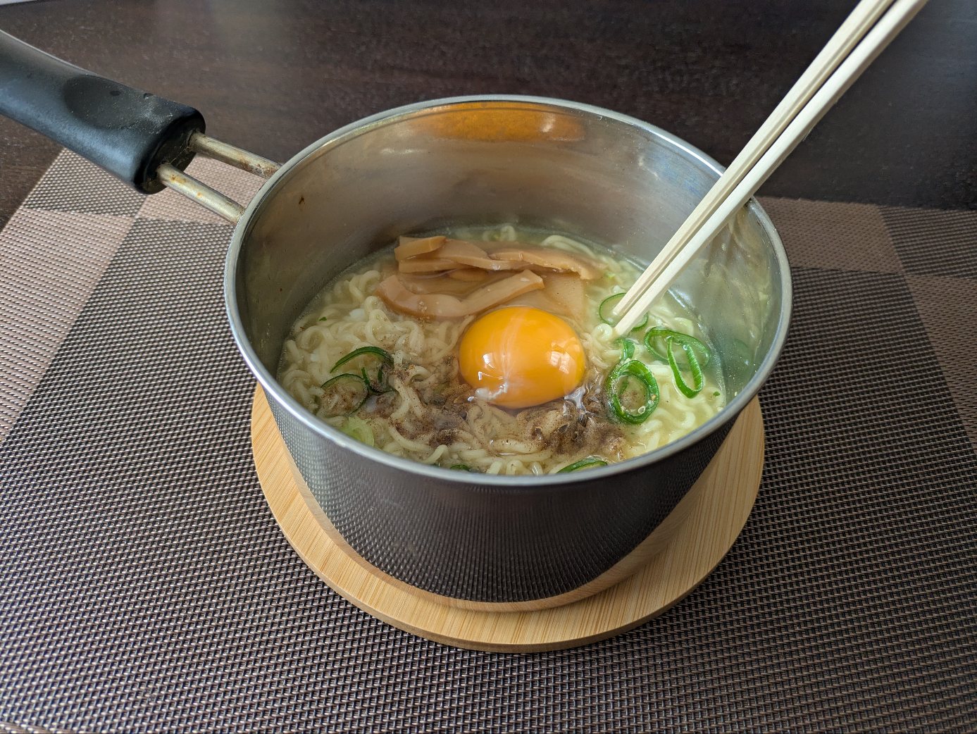 昼はサッポロ一番、いつもの味噌一択から今回は塩にしてみたが、普通に美味い。