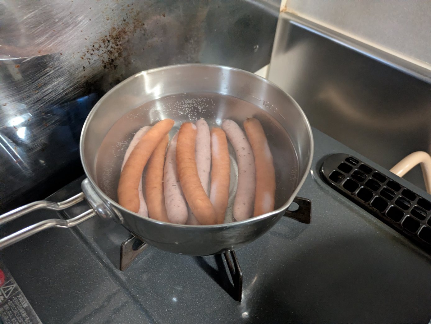 ウィンナーは焼き目を付けてからボイルと思っていたが、面倒になったんで最初からボイルに。