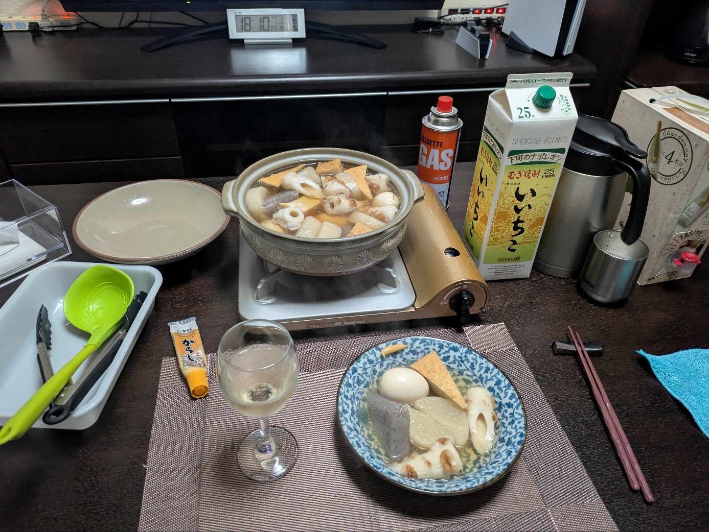 明日は明日のおでん種があるので、今日は具の半分以上消化しないといけない。