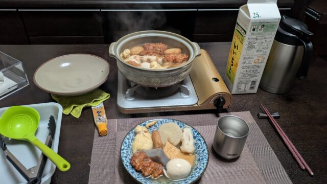 晩酌 今夜の晩酌 おでんの残りで一杯 静かなお正月ですな、今日も昼頃までぐっすりです。年末に買いそろえた食材も順調に消費されてます。準備してるのは3日までなので、日曜日は買いに出ないといけないなぁ。今夜は昨夜の残りに新たなおでん種を加えて。昨日にも増してしみ旨度はアップですかな... 2026.01.02 晩酌