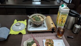 今夜の晩酌、当初は肉豆腐の予定だったのだが、冷蔵庫の在庫処理も兼ねようと思いつき、急遽すき焼きに変更。しかしそうすき焼きに合う具材があるわけもなく、結局、肉豆腐にシイタケ、春菊をいれただけの中途半端なものになってしまったよ。一応、割下だけは濃いめに作ったけどな。