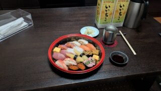 今年最後の晩酌。毎年恒例の、寿司で一杯。